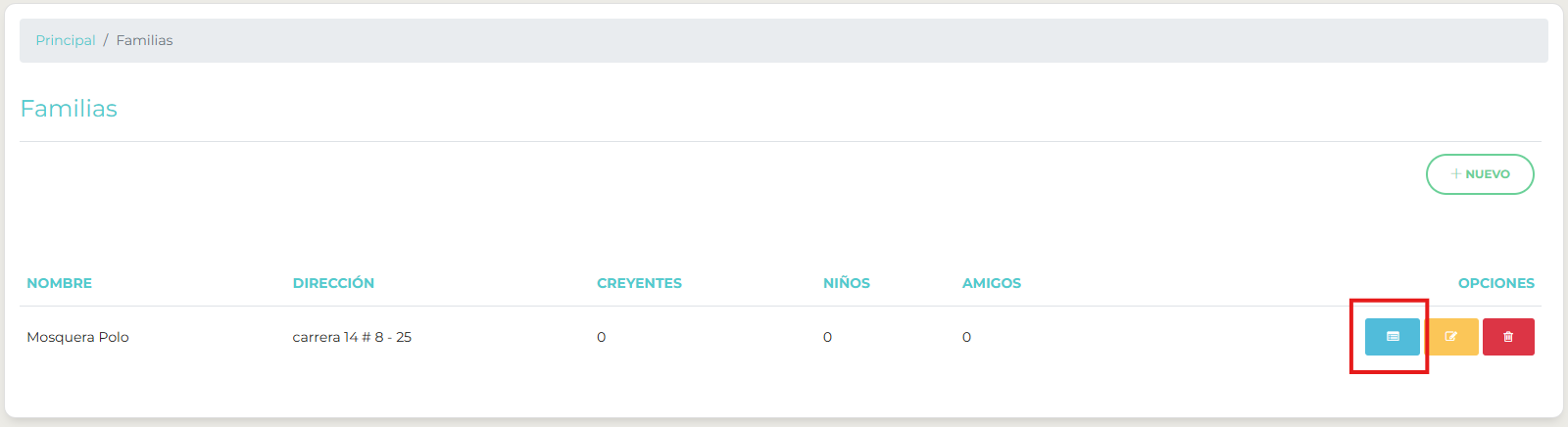 Esta opción permite agrupar a los creyentes por núcleo familiar.